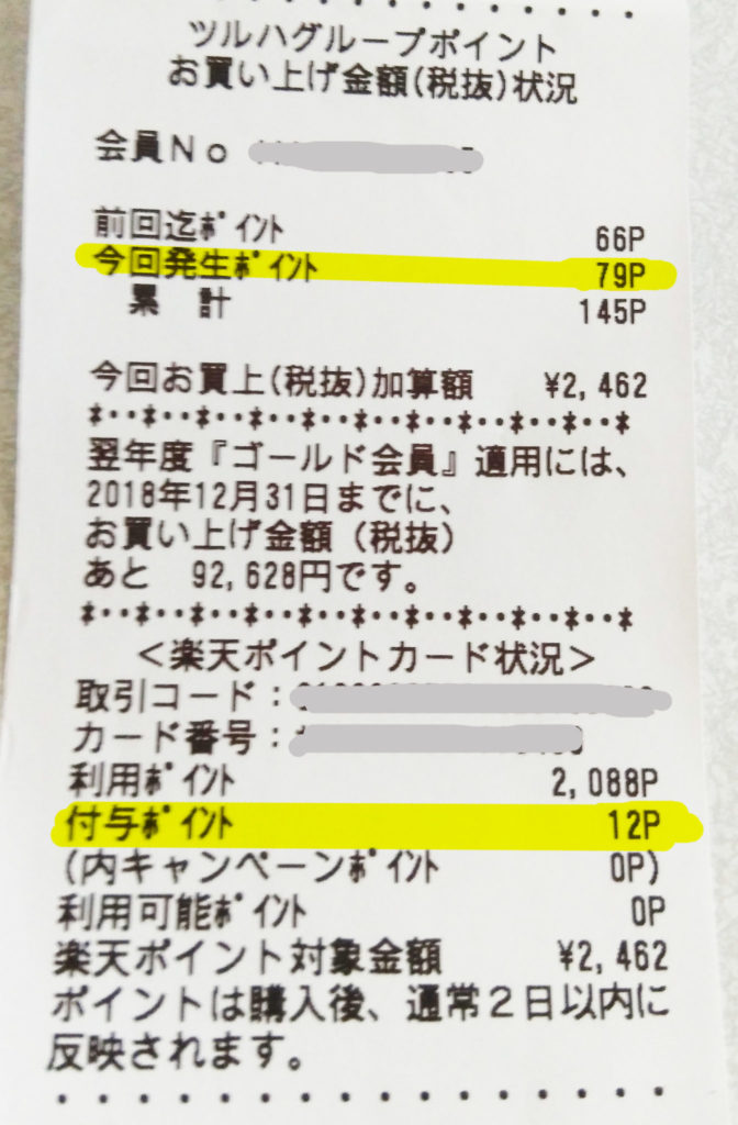 ツルハドラッグでは会計時に楽天のポイントカードを出せば楽天ポイントが貯まります。